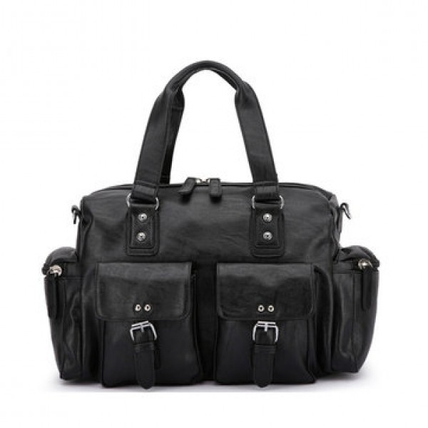 Men PU Leather Solid Vintage Large Capacity Handbag Outdoor Bag Crossbody Bag